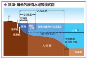 距離的にも、陸地から200海里が1つの基準となっていますので、